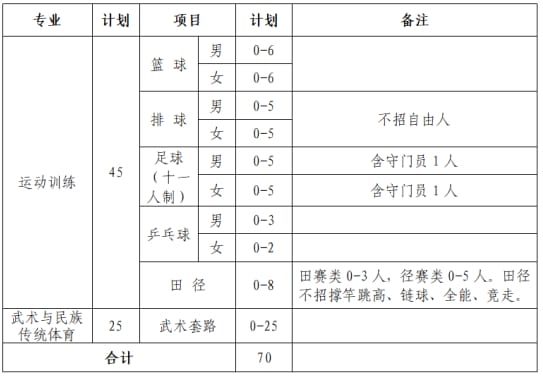 备注:以上各专业计划若因项目生源不足等原因录取时不能完成招生计划,学校将根据运动队建设需要和生源情况在项目之间适当调整。